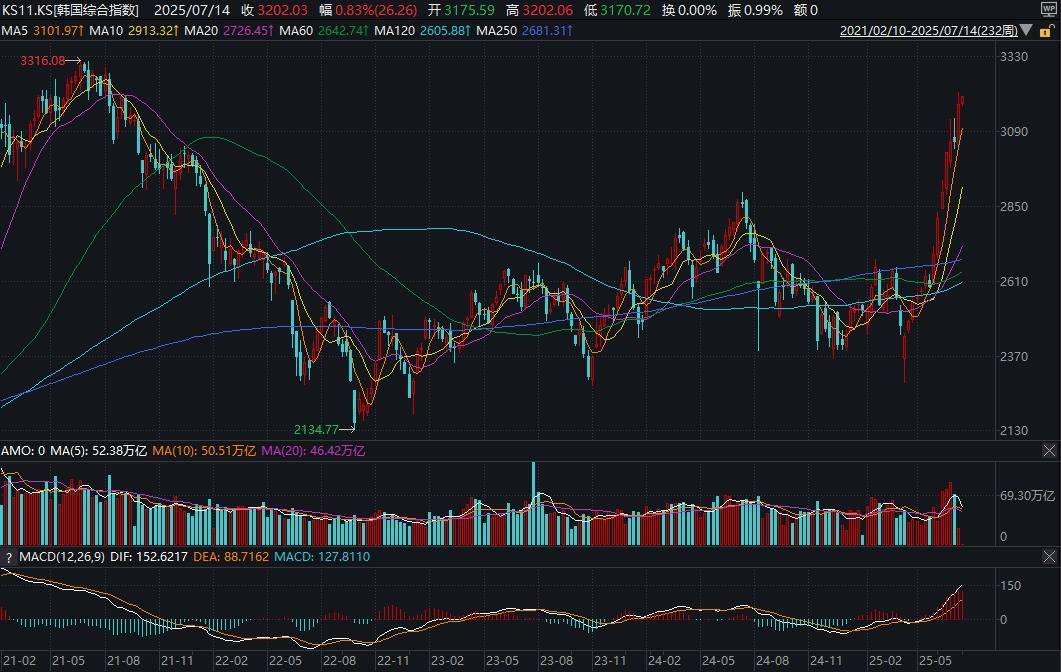国际投行摩根大通最新报告为韩股注入一针强心剂,摩根大通一份报告中表示:“韩国仍然是我们在亚洲/新兴市场中的一个重要超配市场,只要改革进程持续推进,我们将继续建议把握市场波动带来的增持机会。”摩根大通预计韩国指标股指两年后可能触及5000点。李在明总统的“KOSPI指数5000点”承诺将带来各种改革,使国内金融市场更具吸引力。